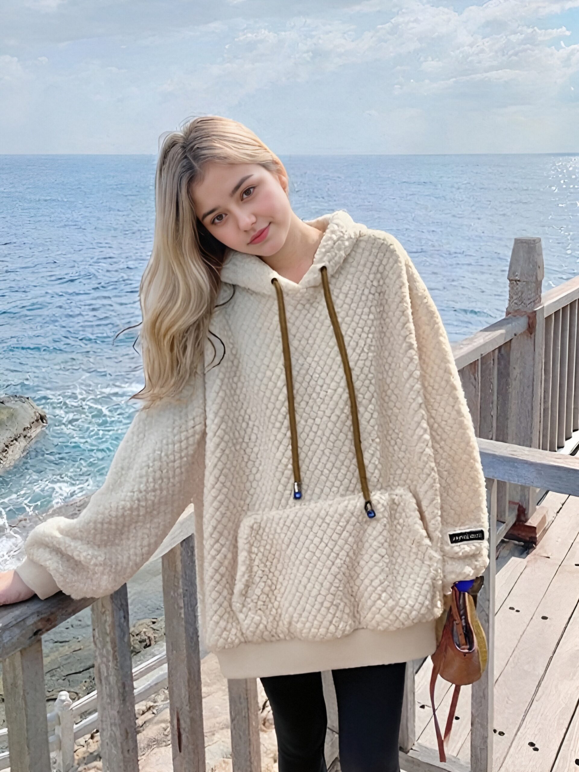 Be the first to review “Beige Textured Fleece Hoodies Oversized Cozy Knit Design with Drawstring Hoodies”