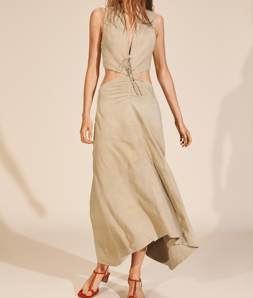 Custom Casual Boho Chic Suede Maxi Dress with Cut Out Detail Women Dresses