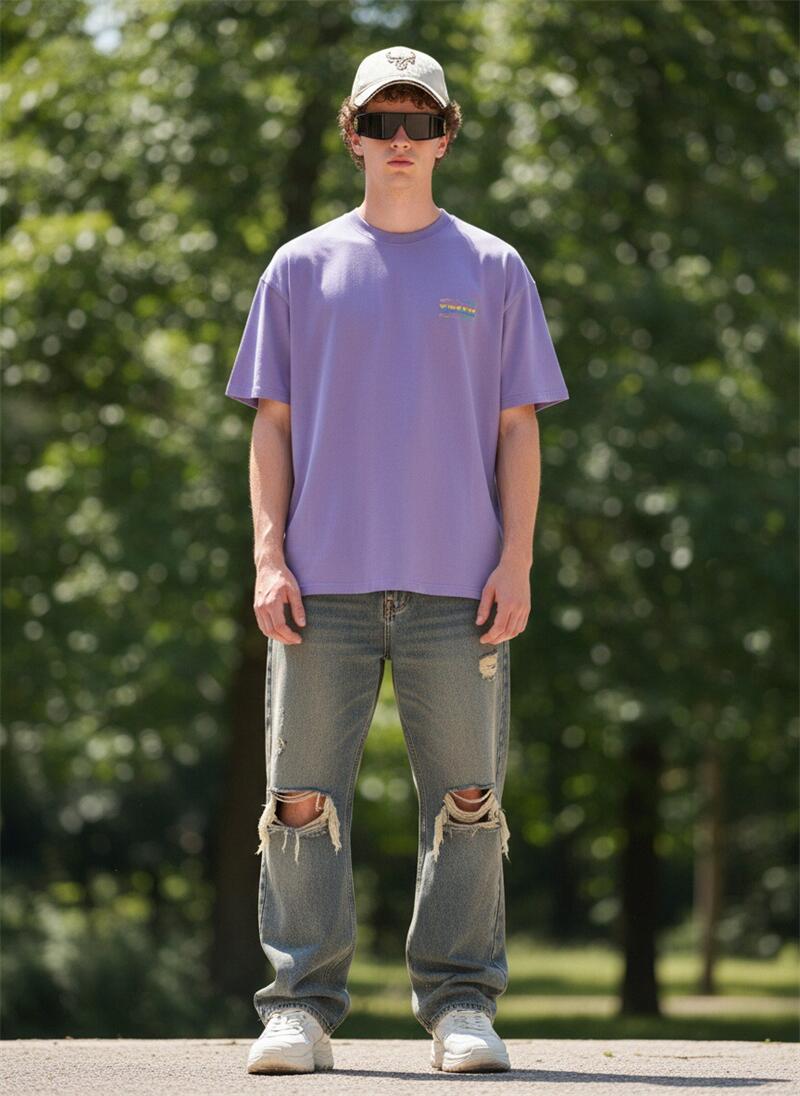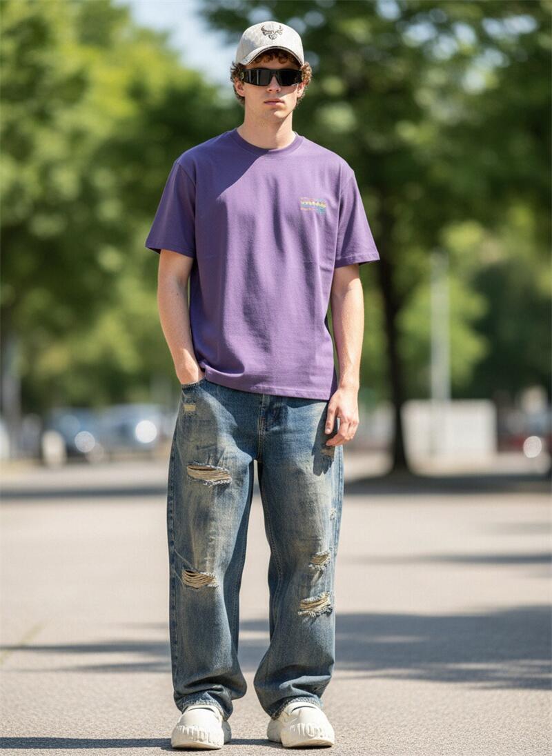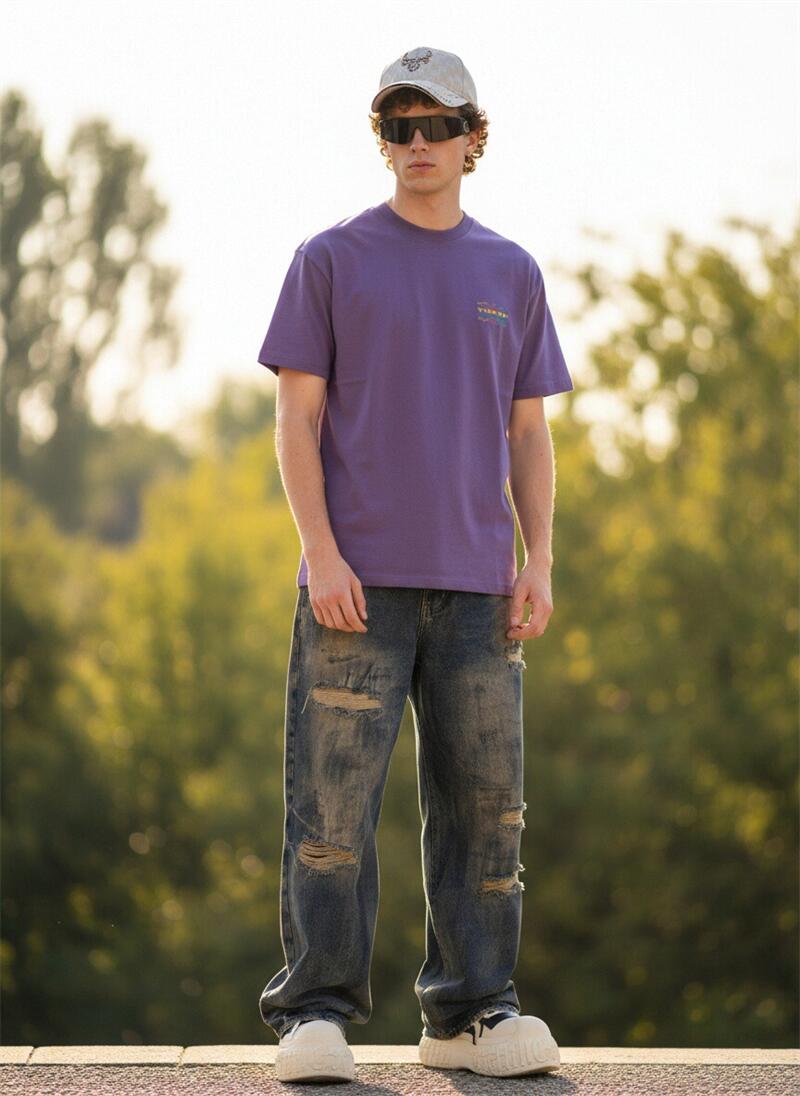 Custom OEM ODM Men’s Purple Cotton T-Shirt Short Sleeve Casual Tee