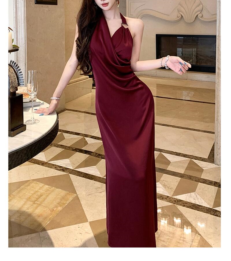 Customizable Burgundy Satin Halter Cowl Neck Maxi Dress Tailored Elegance Dresses