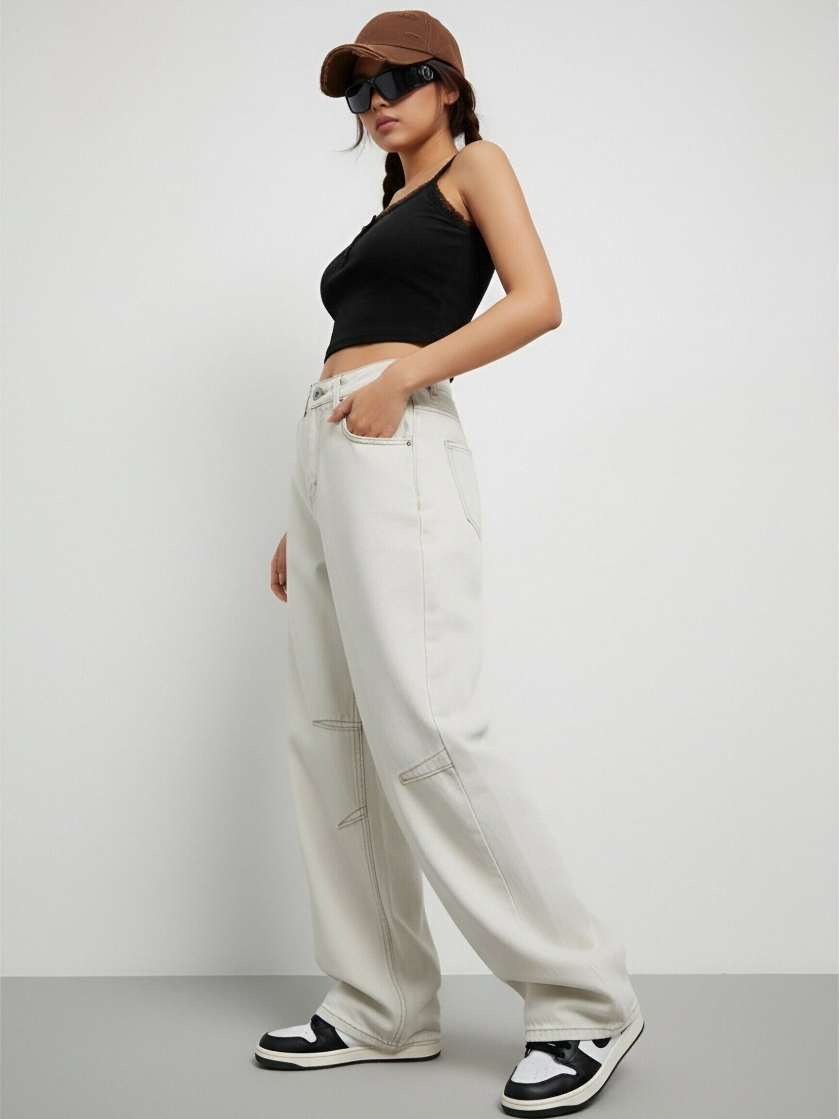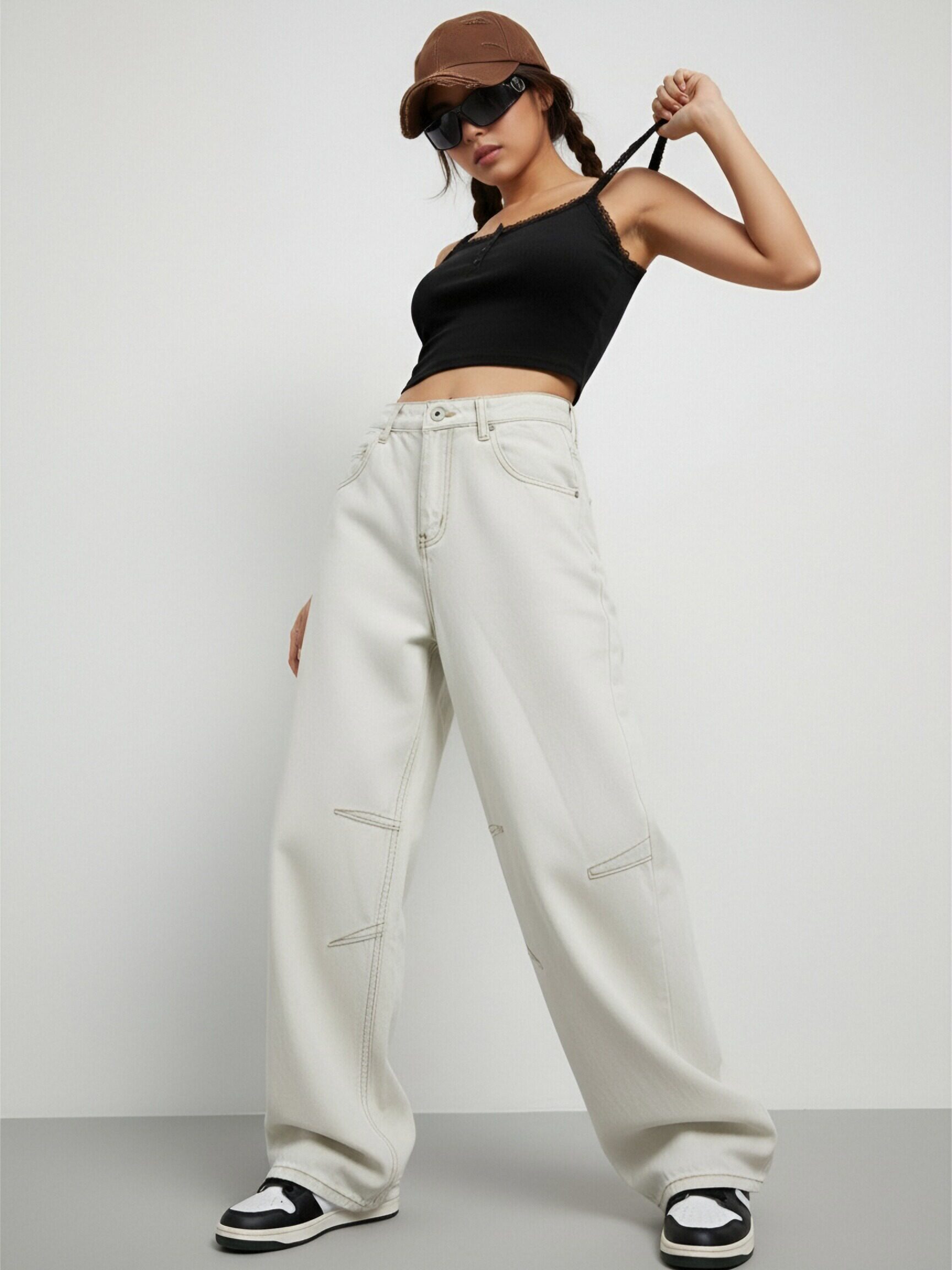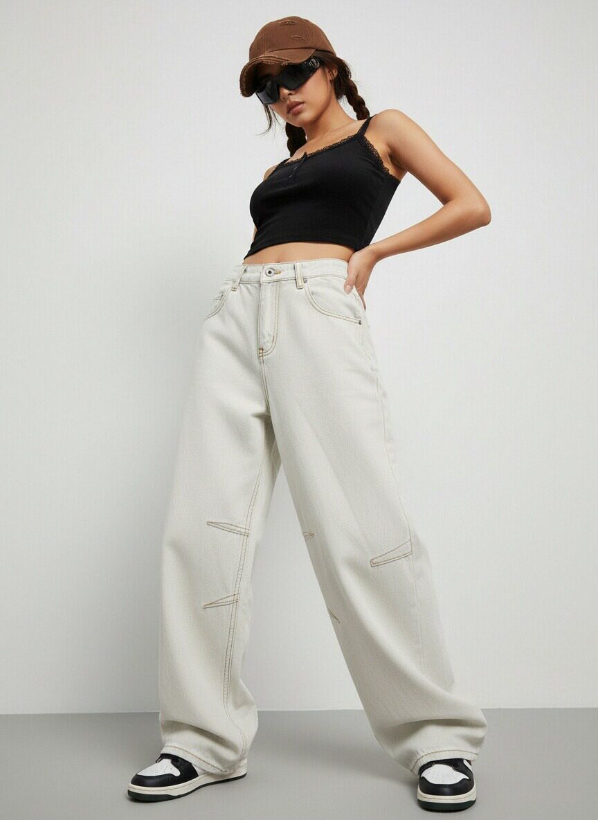 Be the first to review “High Waisted Baggy Jeans for Women Light Beige Wide Leg Denim Trousers”