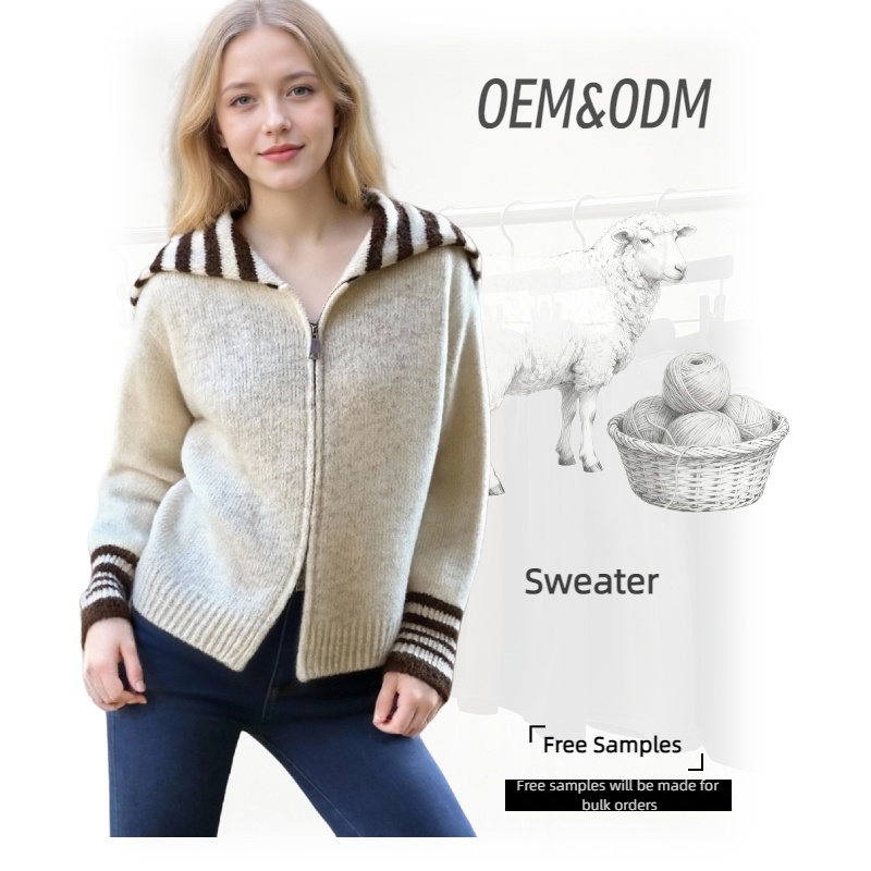OEM ODM Women Clothes Striped Trim Wool Blend Sweater Free Sample