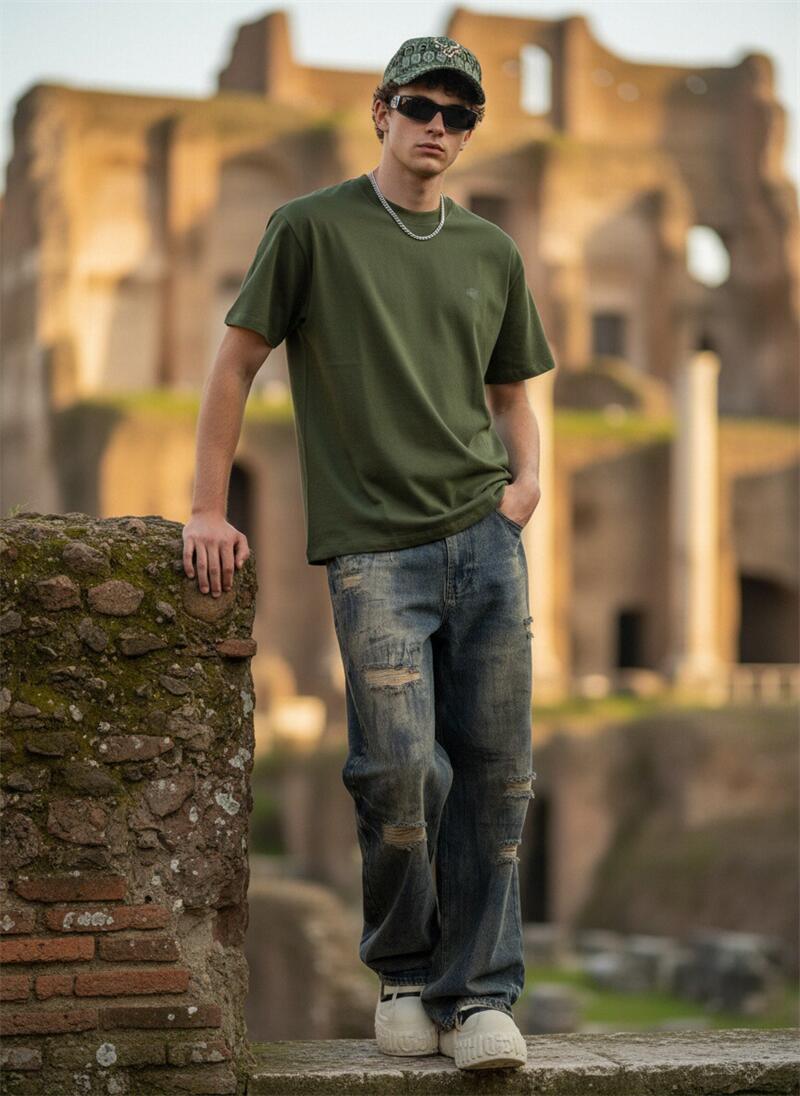 Oversized Olive Green Crew Neck T-Shirt OEM ODM One-Stop Customization Service