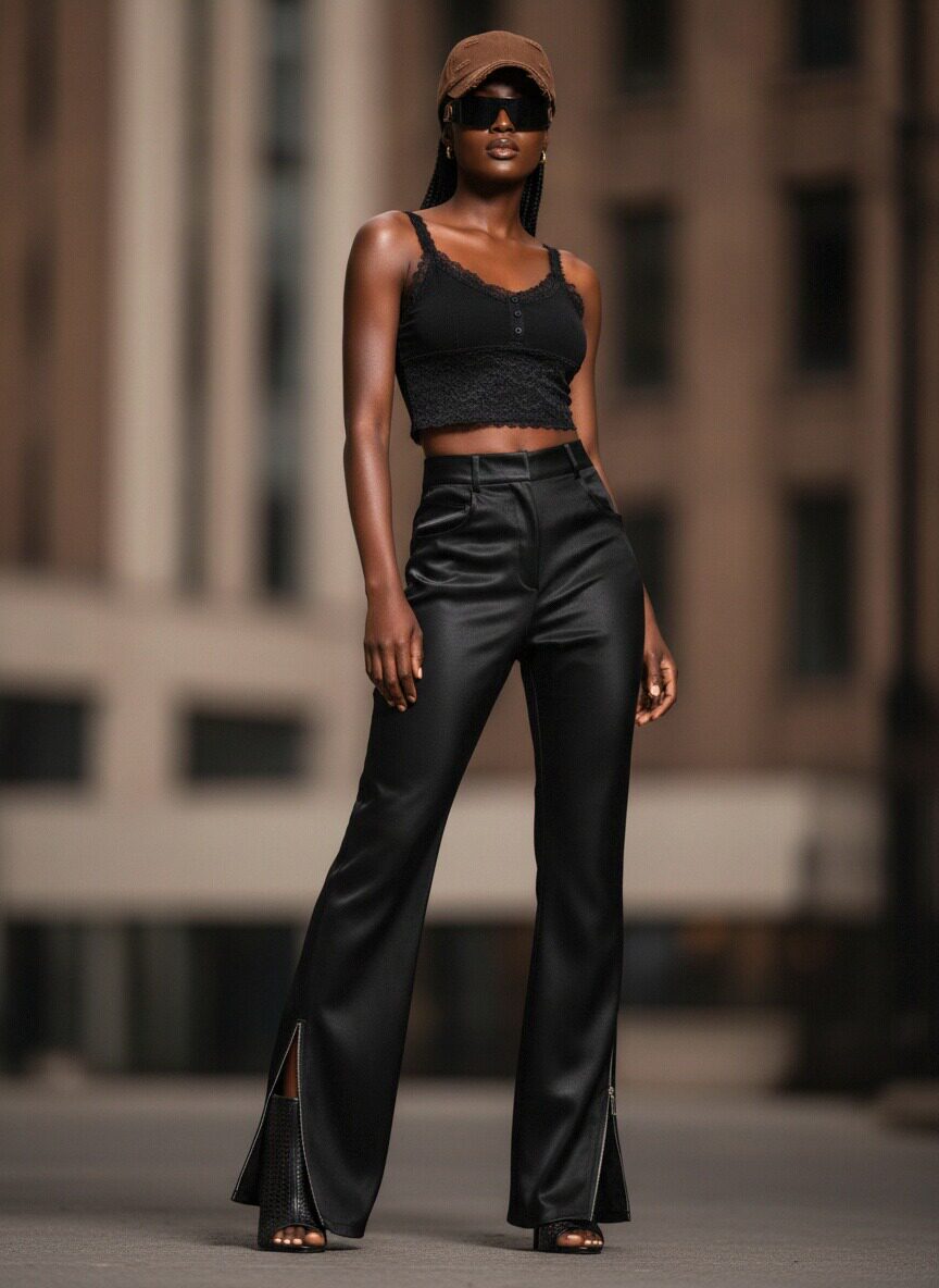 Be the first to review “OEM ODM Women clothes Pu fabric Pant Manufacturer Black Pant”
