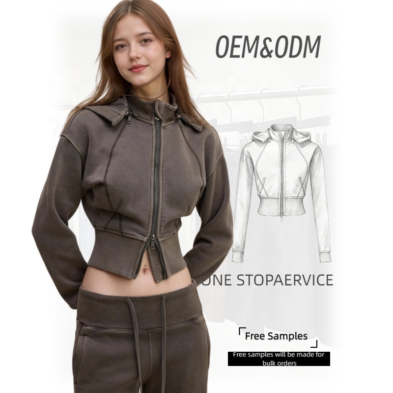 Women Apparel Zipper Front Cropped Hooded Jacket – OEM/ODM Available